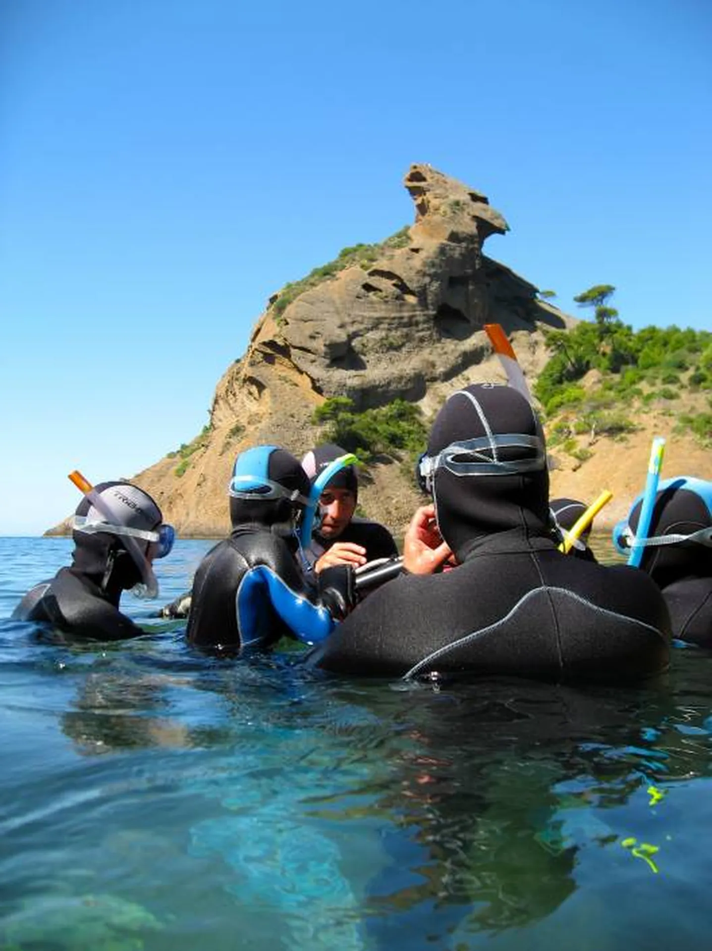 Toujours dans le cadre d'une visite des calanques l'aqua challenge viendra pimenter votre journée avec différents parcours aquatiques et différents ateliers. Vous serez alors divisé en 2 équipes, nous vous recommandons d'ailleurs un nombre paire de participant, sinon le futur marié devra passer 2 fois. :)les activités qui vous attendent:-tir à la corde dans l'eau avec masque et tubas -challenge bouée tractée, épreuve individuelle mais les points gagnés ou perdus sont pour votre équipe, vous aurez chacun 3 minutes sur la bouée, le but: essayer d'y rester!-Pour finir, un relai à la nage mêlé a une épreuve d'apnée façon Koh Lanta: le départ se fera du bateau et vous devrez atteindre une bouée à la quelle sera accroché des mousquetons à différentes profondeur . Il faudra alors récupérer un mousqueton et en suite revenir au bateau pour passer le relai à un membre de votre équipe; les plus rapides remporteront l'épreuve!Cliquez ici pour obtenir le supplément tarifaire "Aqua challenge"